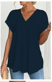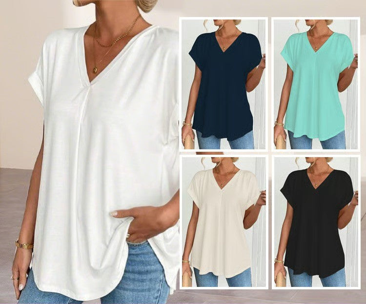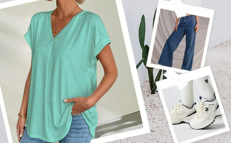 • Cuello en V favorecedor, corte regular