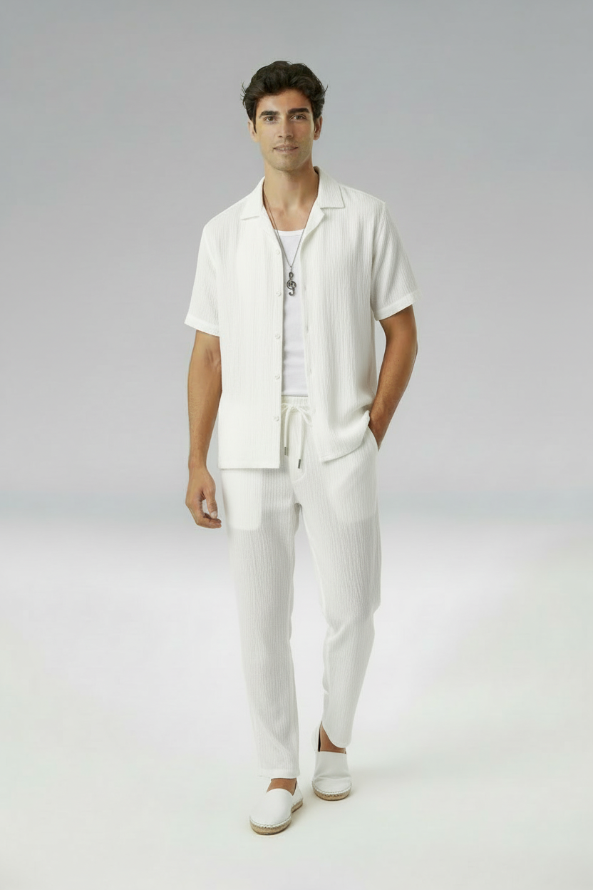 Imagínate: un cálido día de verano, tú con un conjunto ligero que se adapta perfectamente, es transpirable y tiene un aspecto impecable. Maurice™ está diseñado para hombres que valoran la comodidad y un aspecto elegante, sin complicaciones. Ideal para las vacaciones, durante un paseo o simplemente para disfrutar en casa, en el jardín.